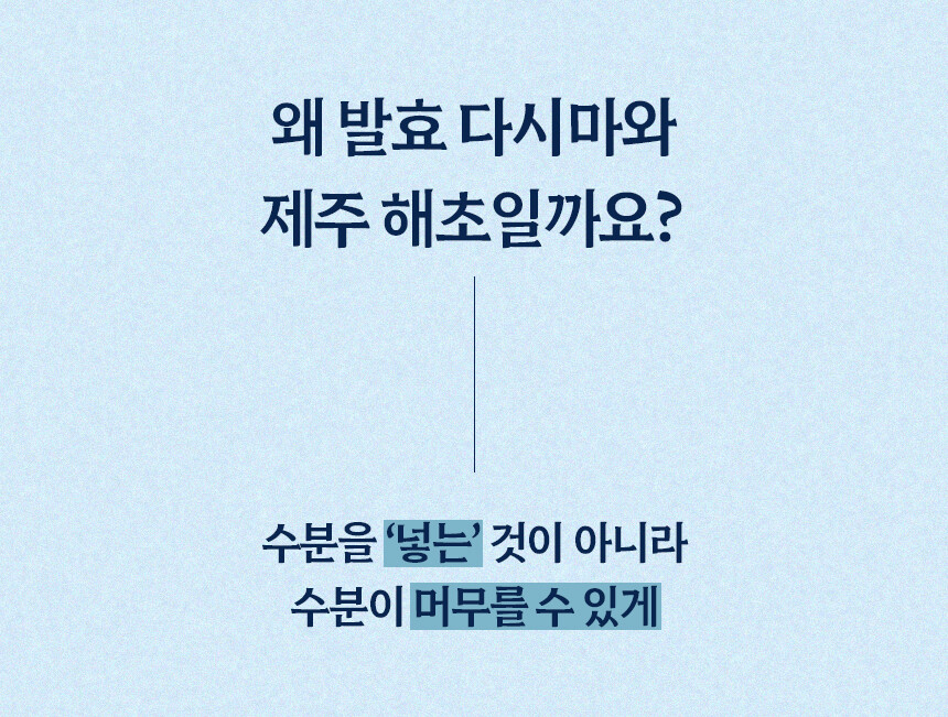 정제수 대신 자연발효과정을 거친 프리미엄 발효다시마 83%을 담아